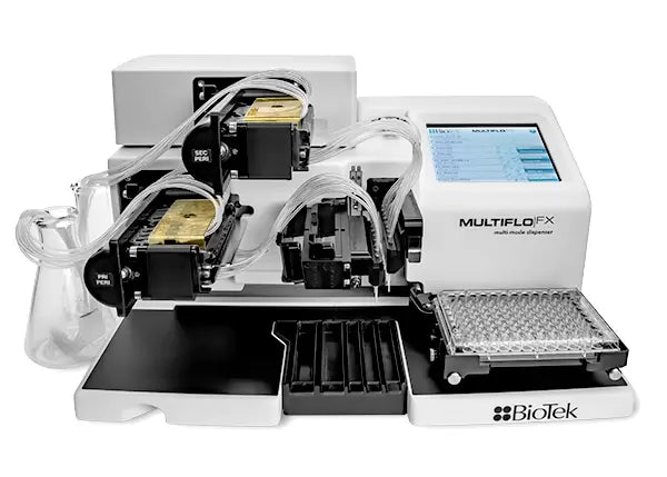Il dispensatore di micropiastre MultiFlo FX definisce un nuovo standard nella dispensazione dei liquidi, offrendo una piattaforma compatta, versatile e di facile utilizzo. Progettato per gestire tutte le necessità dei laboratori moderni, supporta fino a 4 diversi reagenti in contemporanea con la massima precisione, coprendo micropiastre da 6 a 1536 pozzetti.